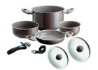 Nádobí CHOCOLATE sada hrnců 7+1 s průměrem 20 cm a nepřilnavým povrchem. Perfektní pro každodenní použití s odnímatelnou rukojetí a popruhem.