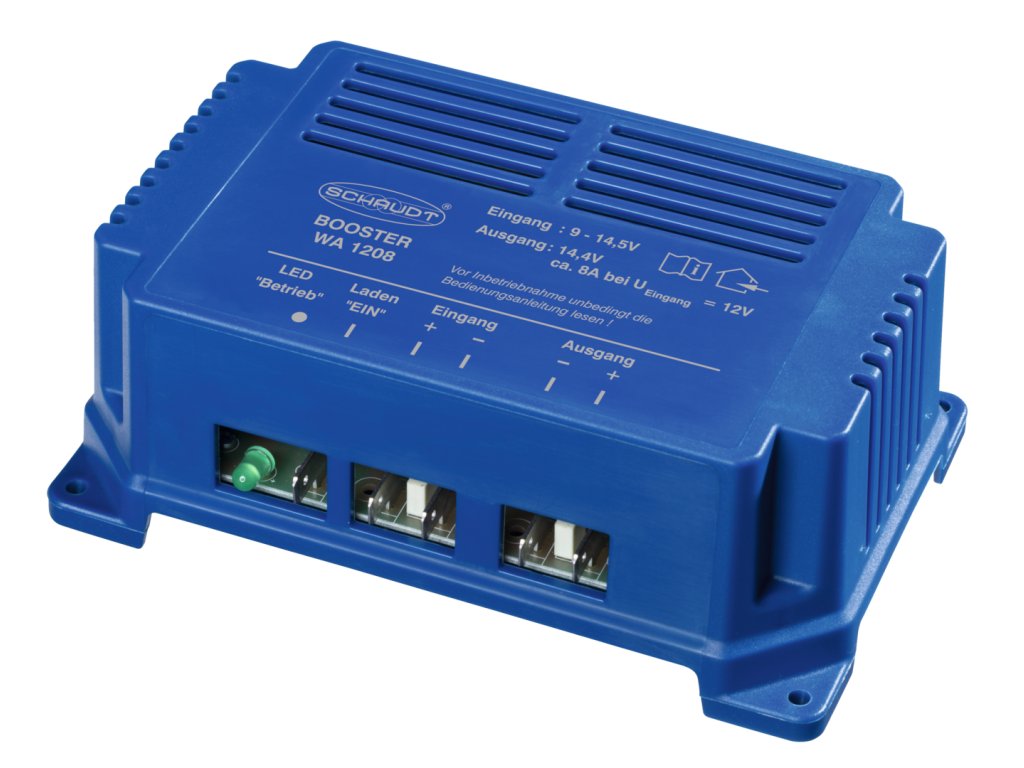 Schaudt WA 1208 Booster je navržen pro pohodlné nabíjení baterie v karavanu během jízdy. Tento kompaktní a efektivní booster zvyšuje nabíjecí napětí na 14,4 V, čímž zajišťuje rychlé a bezpečné dobití baterie.