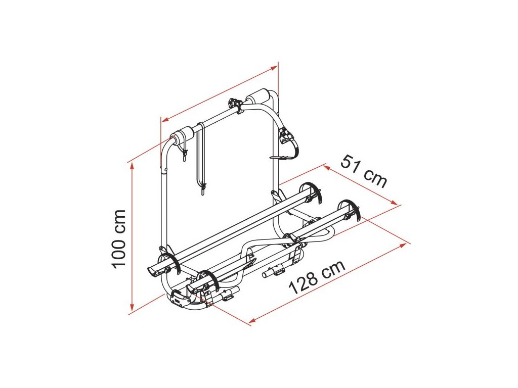 Díky pevné hliníkové konstrukci a jednoduchému systému montáže na oj karavanu zaručuje maximální stabilitu během jízdy. Tento model umožňuje přepravu až tří kol, a přesto zůstává lehký a snadno ovladatelný.