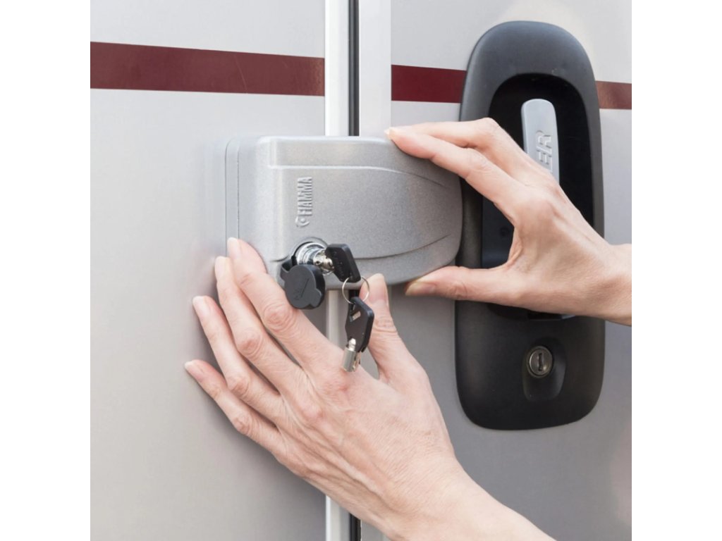 Sada 3 přídavných zámků Fiamma Safe Door Frame je navržena pro dodatečné zabezpečení karavanů a obytných vozů. Zámky jsou vyrobeny z robustního eloxovaného hliníku, což zaručuje vysokou odolnost proti nežádoucímu přístupu a povětrnostním podmínkám.