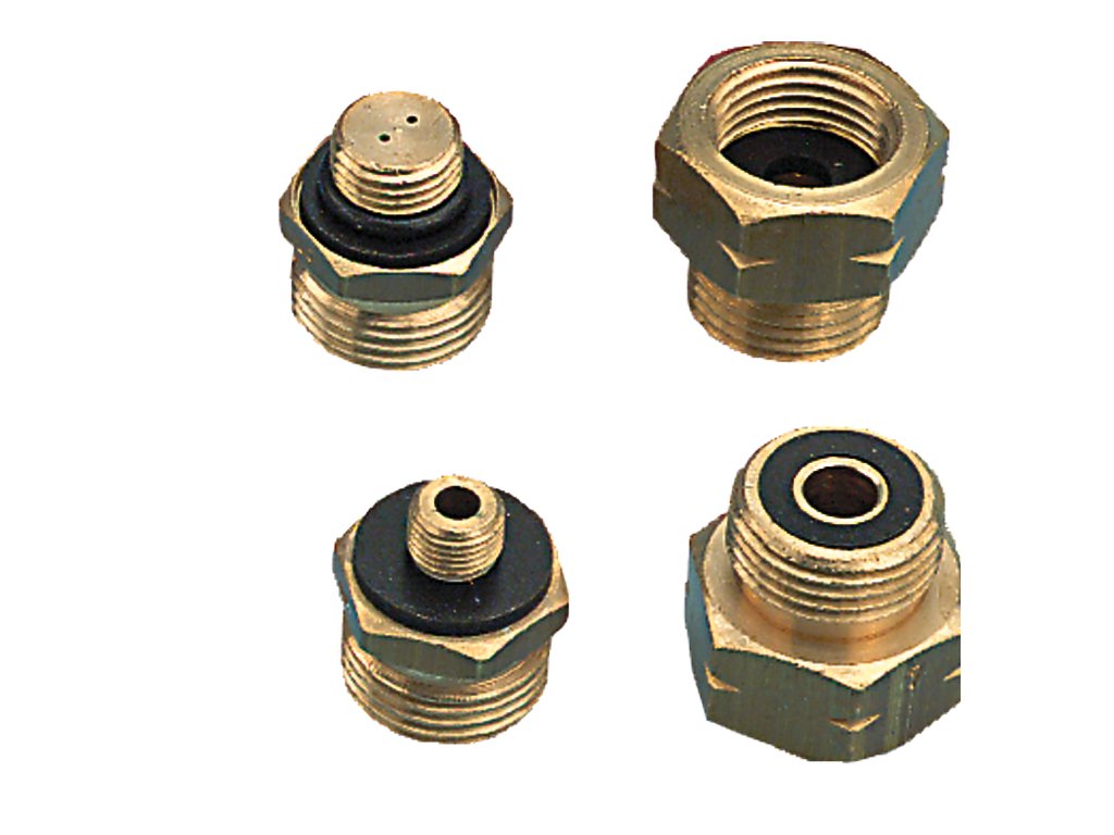 Euro sada adaptérů obsahuje 4 adaptéry pro připojení téměř všech evropských plynových lahví k regulátorům DIN.