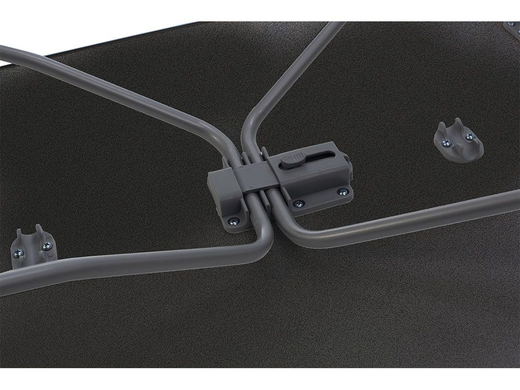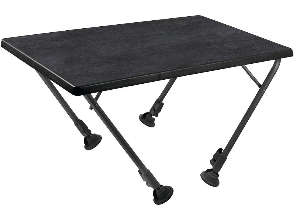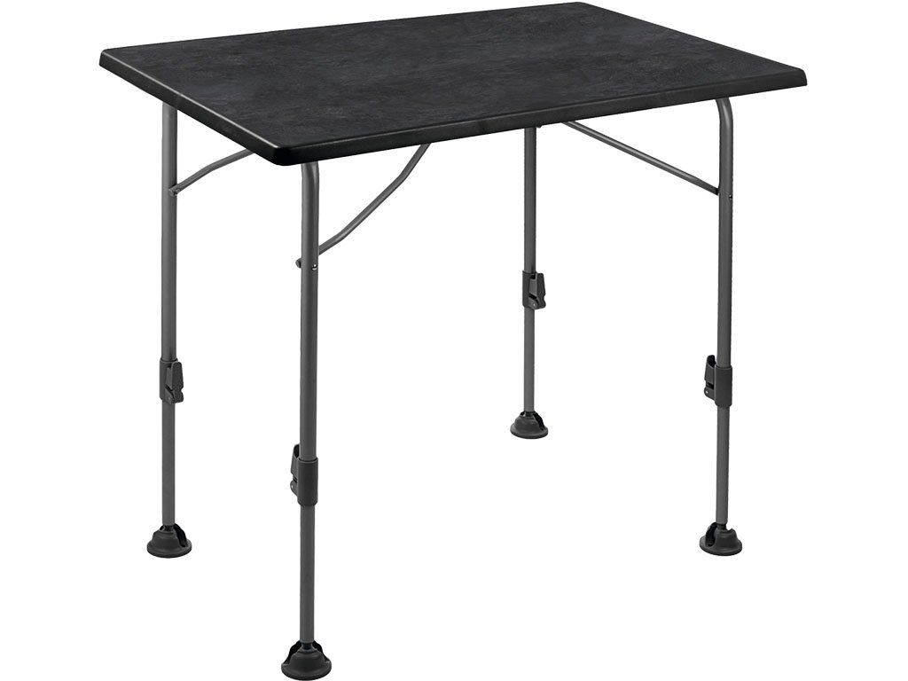 Teleskopické nožičky z práškově lakované oceli zajišťují stabilitu na různých površích a zároveň umožňují plynulé výškové nastavení – stůl si tak jednoduše přizpůsobíte svým potřebám i nerovnému terénu. Díky kompaktnímu skládacímu rozměru pouhých 8 cm se stůl snadno vejde do úložného prostoru karavanu, obytného vozu nebo kufru auta.